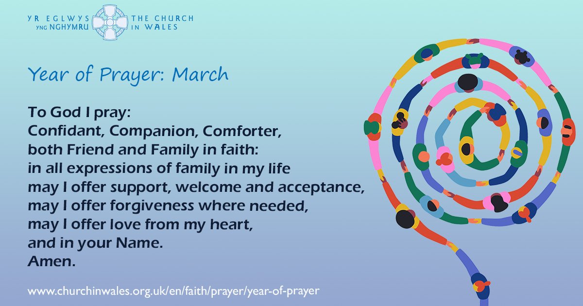 Welcome to the March Prayer, and the seventh in a series of 12. Each month we will explore different themes and different ways of praying which we hope you will find helpful as ways in which to encounter God. The Provincial Spirituality Group in the Church in Wales.