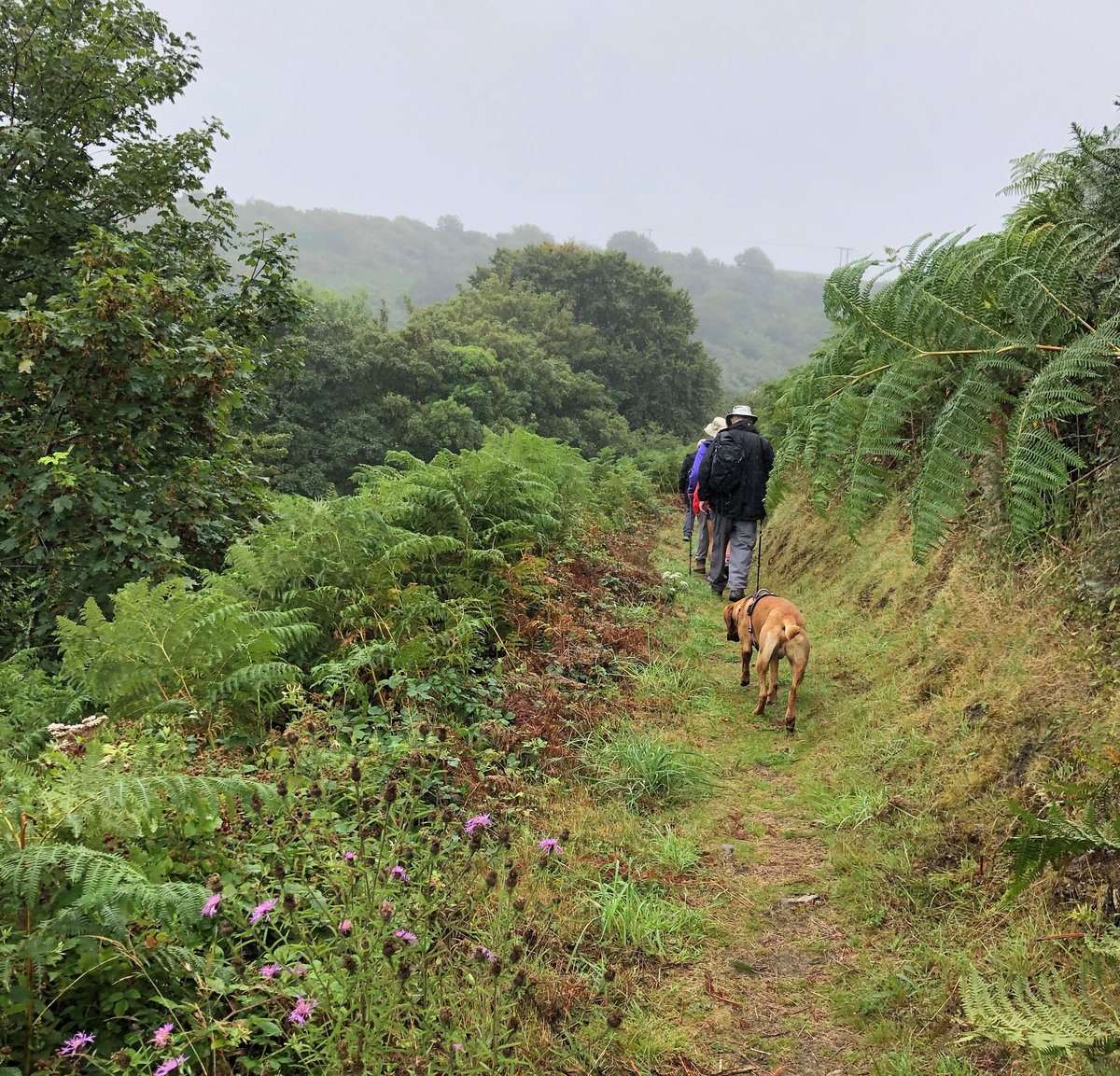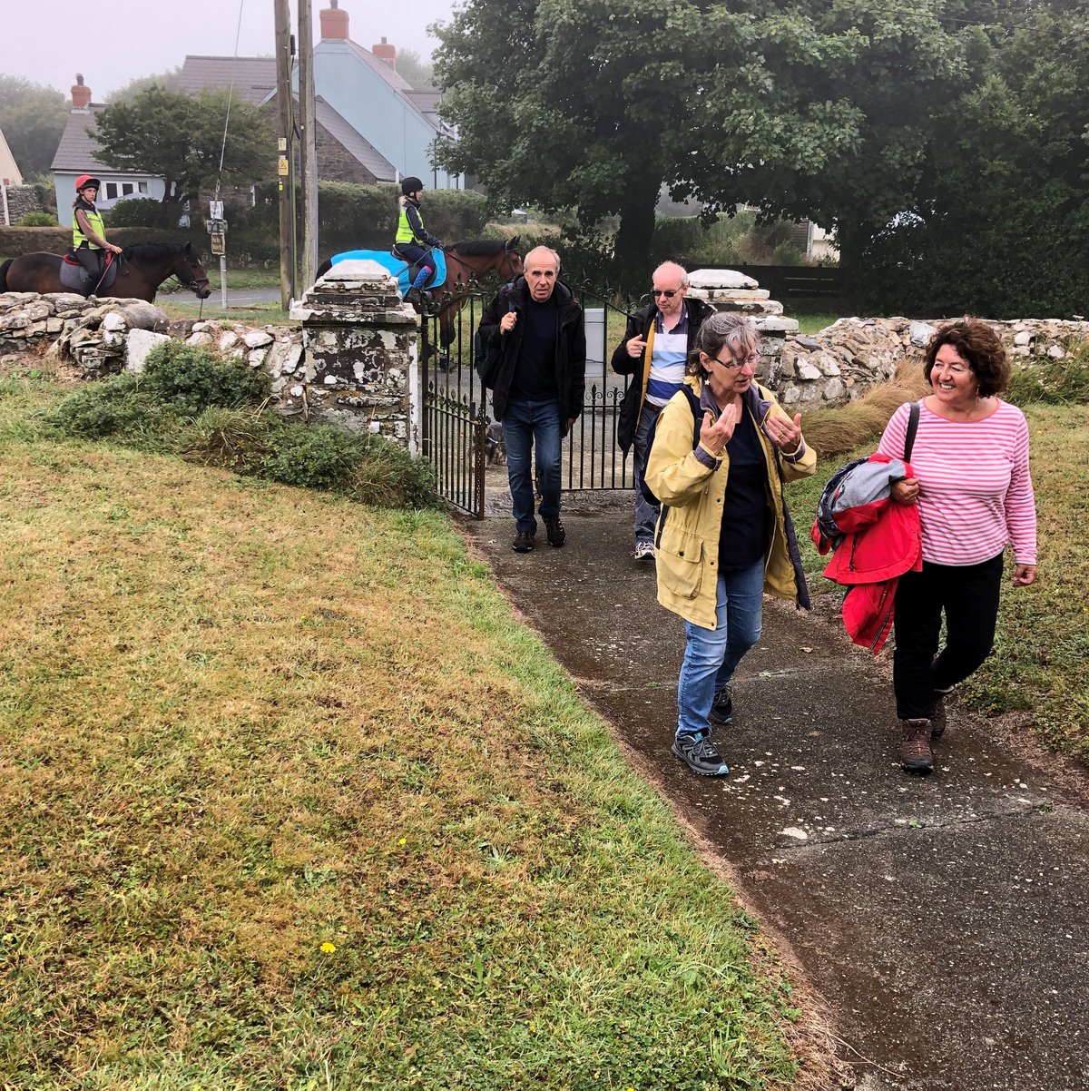 Our pilgrimage was organized by Janet Ingram, education and pilgrimage officer at St Davids Cathedral pilgrim centre, Tŷ’r Pererin. It was a four-mile circular pilgrimage, beginning and ending at Whitchurch. Janet began by grounding the pilgrims in prayer, with a Celtic prayer of blessing, before we stepped out of the church and the ‘’llan”, the church grounds, towards a nearby hidden footpath which ran parallel to the road. This, it turned out, was the ancient pilgrim path which led to a holy well in a large coppice, overlooked by the outline of an Iron Age fort. The well was an impressive stone structure now largely hidden in undergrowth which had been recently hacked back to make way for visiting pilgrims. For most of the year, water cascades from the well into pools below but a dry summer has taken its toll in Pembrokeshire, which became one of the first counties in the UK to introduce a hosepipe ban. While the well was still full, the stream was barely a trickle. Nevertheless, with the low mist hanging off the trees and the air damp with drizzle, the site felt magical.