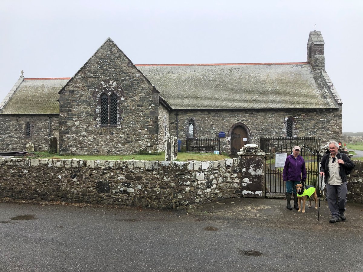 And so it was that about a dozen people and three dogs met on a misty Monday morning for a Sacred Sites pilgrimage, just a few miles east of St Davids at the ancient St David’s Church in the hamlet of Whitchurch. In medieval times, the church was limewashed, giving the hamlet its name ‘White Church’, and was a beacon for pilgrims travelling from the east along the ‘via Julia’ route to St Davids Cathedral. Outside the church was also a stone cross, giving rise to the hamlet’s Welsh name, Tregroes – place of the cross. There the pilgrims would have received a welcome, nourishment and time for prayer and reflection before their final push to the Cathedral. Today most of the church’s visitors are walkers, tourists and cyclists, and the congregation has dwindled to just three members who are gallantly planning to create a heritage centre and pilgrim resting place.